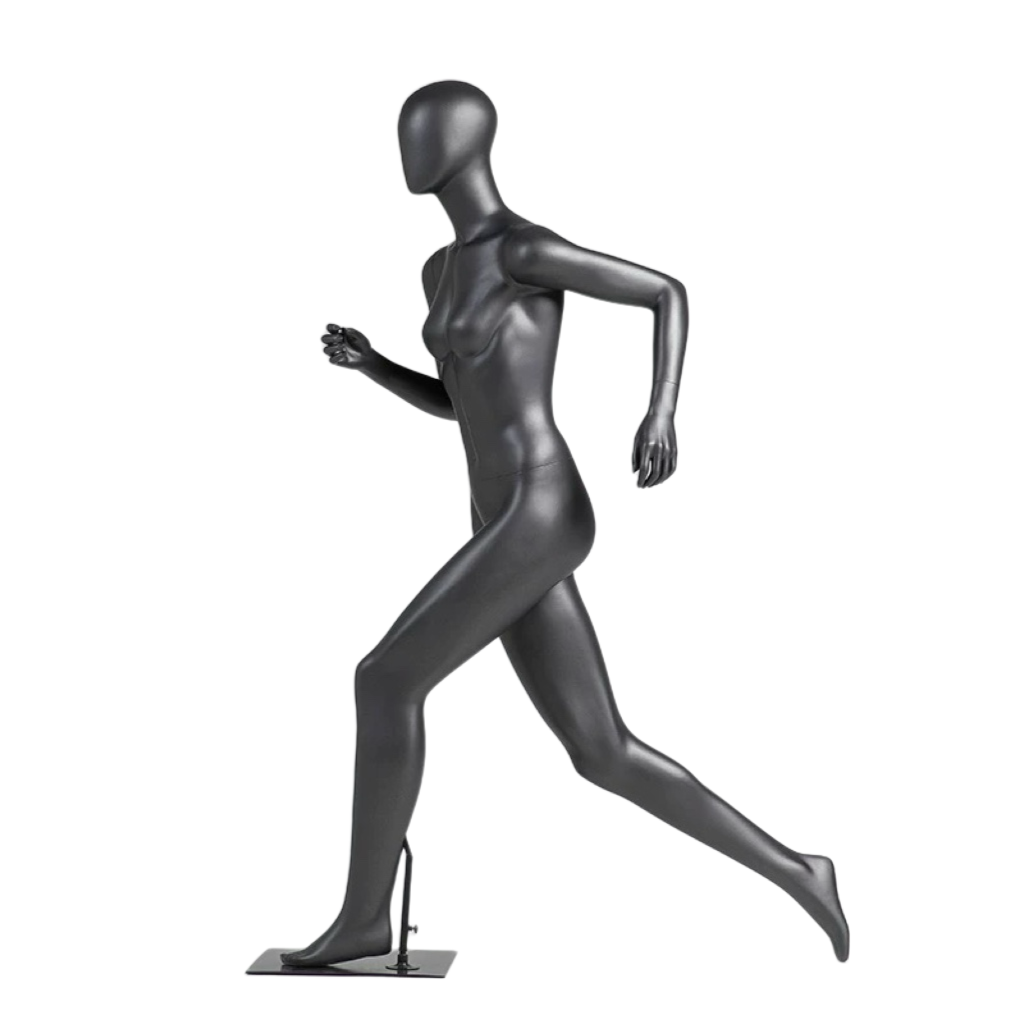 When static poses can’t tell your story, the FM110647 fiberglass running pose female mannequin breaks through. Designed with kinetic energy and anatomical precision, this life-sized display brings your activewear, sports gear, or urban fashion to life.