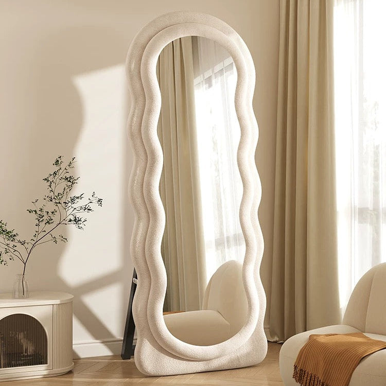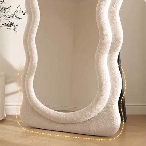 This wavy upholstered full-length mirror introduces a gentle, stylish character to any environment. The high-clarity reflection and flexible display options—free-standing or wall-mounted—make it suitable for boutiques, studios, or home spaces. It brings together aesthetic appeal and everyday practicality in a balanced, thoughtful way.